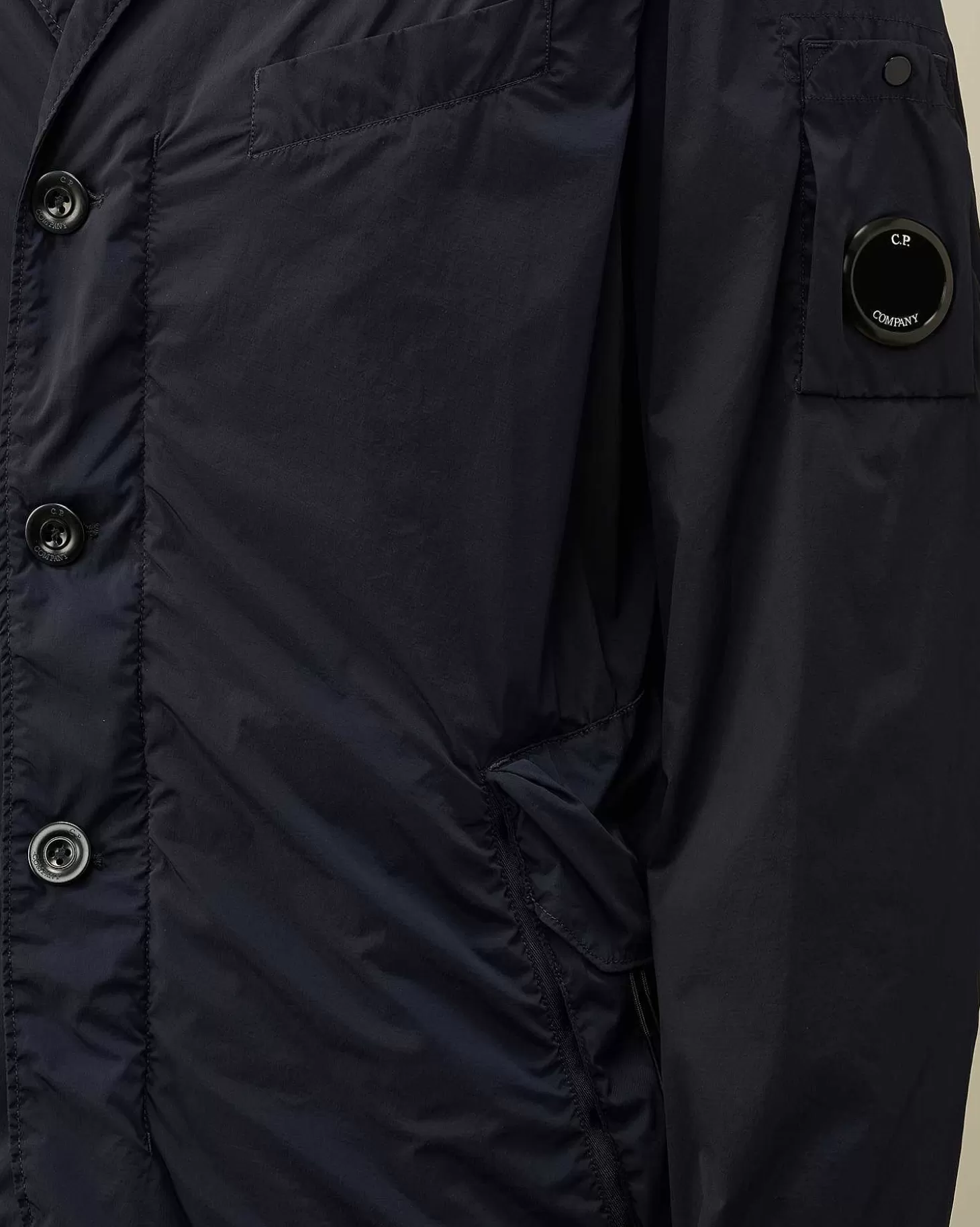 Ce Blazer Ajusté Présente Des Revers De Col Classiques, Une Fermeture Boutonnée Tout Du Long Et Une Poche Poitrine. Une Poche Sur La Manche Portant Le Détail En Forme De Verre De Lunette C.P. Company, Des Poches Latérales Zippées À Rabat Et Des Poignets Réglables Complètent L’Ensemble. Modèle Confectionné En Nycra-R, Une Matière Tissée À Partir De Nylon Régénéré Fourni Par Econyl®, Société Spécialisée Dans Le Recyclage Du Nylon. Le Blazer Est Teint En Pièce Pour Plus De Profondeur Et D’Intensité Dans Les Couleurs. Coupe Droite.