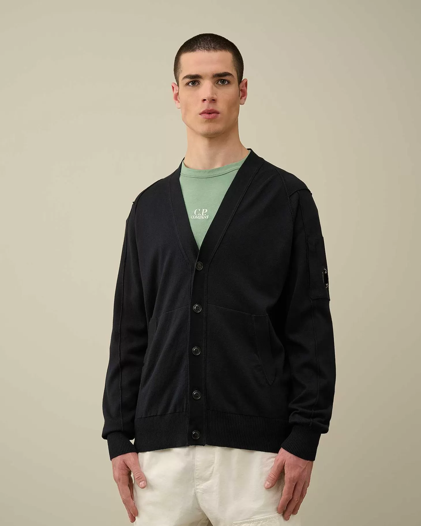 Ce Cardigan Boutonné Sur Toute La Longueur Présente Un Col En V Côtelé Et Une Poche Sur La Manche Ornée Du Détail En Forme De Verre De Lunette C.P. Company. Les Mêmes Finitions Côtelées Se Retrouvent Sur Les Poches, Les Poignets Et L’Ourlet. Tricoté Dans Un Coton Sea Island Jauge 14, Il Offre Une Infinie Douceur Et Une Isolation Optimale. Coupe Droite.