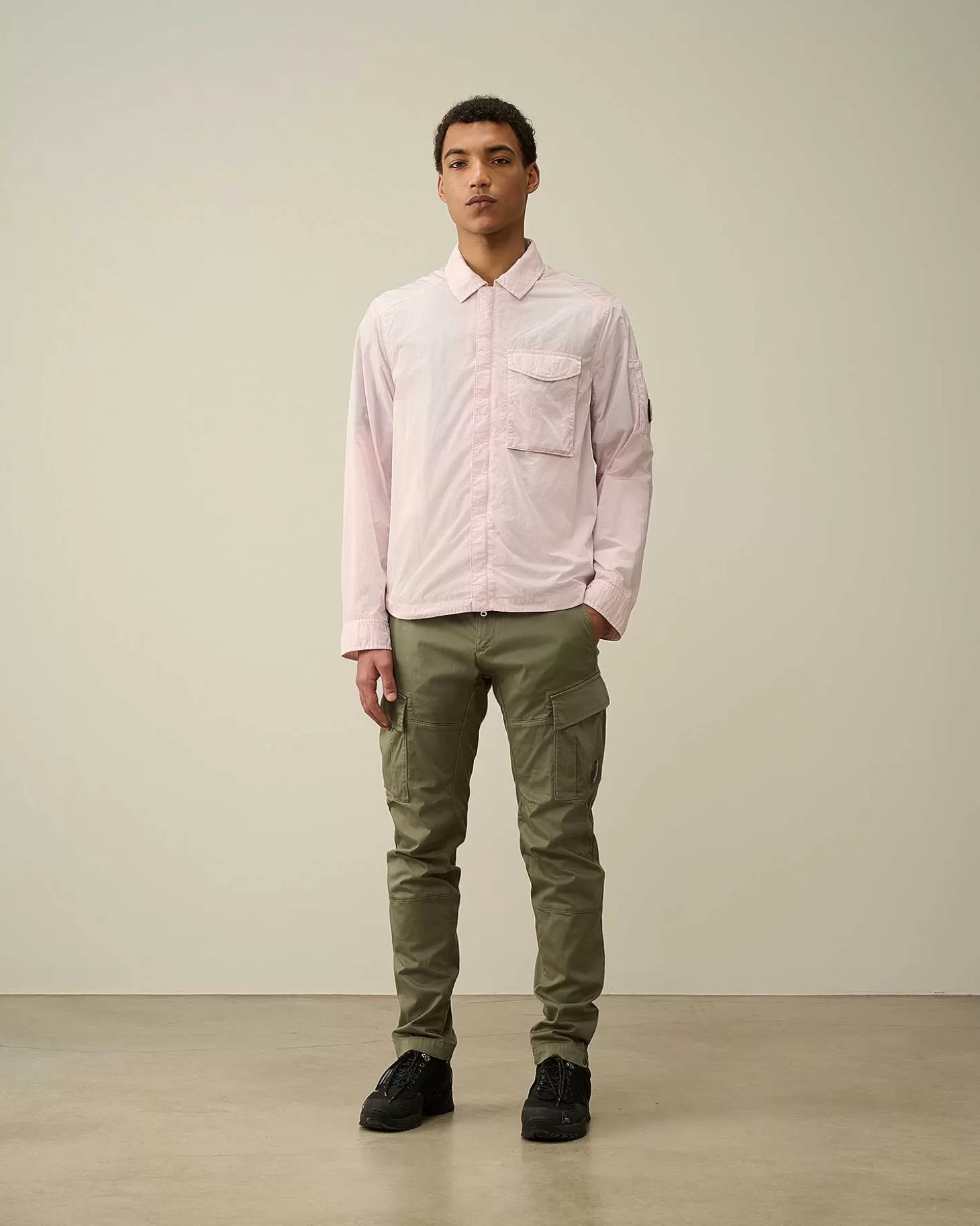 Surchemise À Fermeture Zippée Dissimulée Avec Col Classique, Poche Poitrine, Poignets Réglables Et Le Détail En Forme De Verre De Lunette C.P. Company Sur La Manche Gauche. Le Chrome-R Se Compose À 100 % De Nylon Recyclé Pré-Consommation, Obtenu À Partir De Déchets De Production Détournés Du Circuit D’Élimination Des Déchets Et Revalorisés, Qui Donnent À La Matière Une Nouvelle Vie. Il Est Ensuite Teint En Pièce Pour Plus De Profondeur Et D’Intensité Dans Les Couleurs. Coupe Droite.