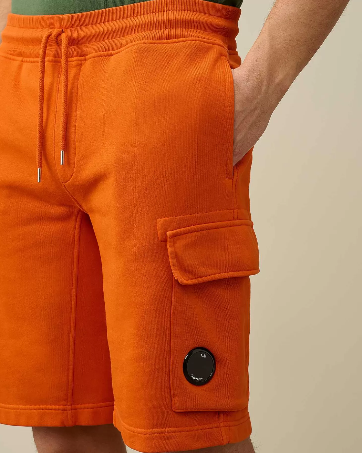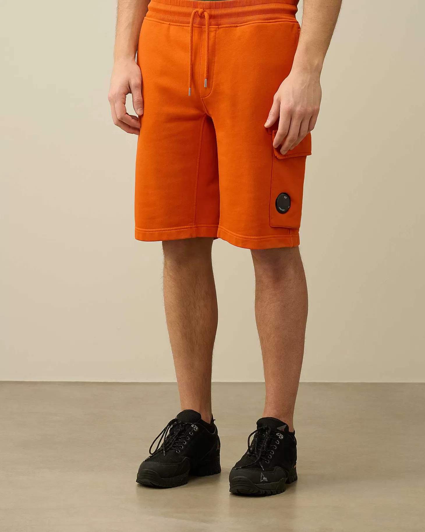 Short Longueur Genoux Avec Taille Réglable À Cordons De Serrage Et Deux Poches En Biais Pour Les Mains. Ce Short Teint Par Réserve Présente Une Unique Poche Cargo Ornée Du Détail En Forme De Verre De Lunette C.P. Company. Modèle Confectionné Dans Un Molleton De Coton Basique Alliant Confort Et Respirabilité, Puis Teint Par Réserve Pour Un Fini Ton Sur Ton Contrasté. Coupe Droite.