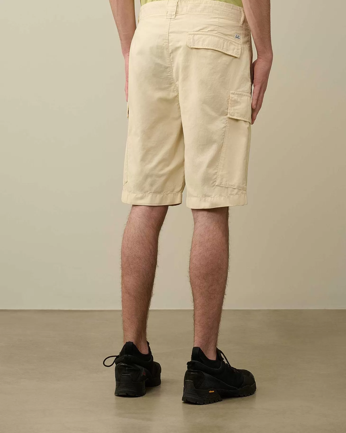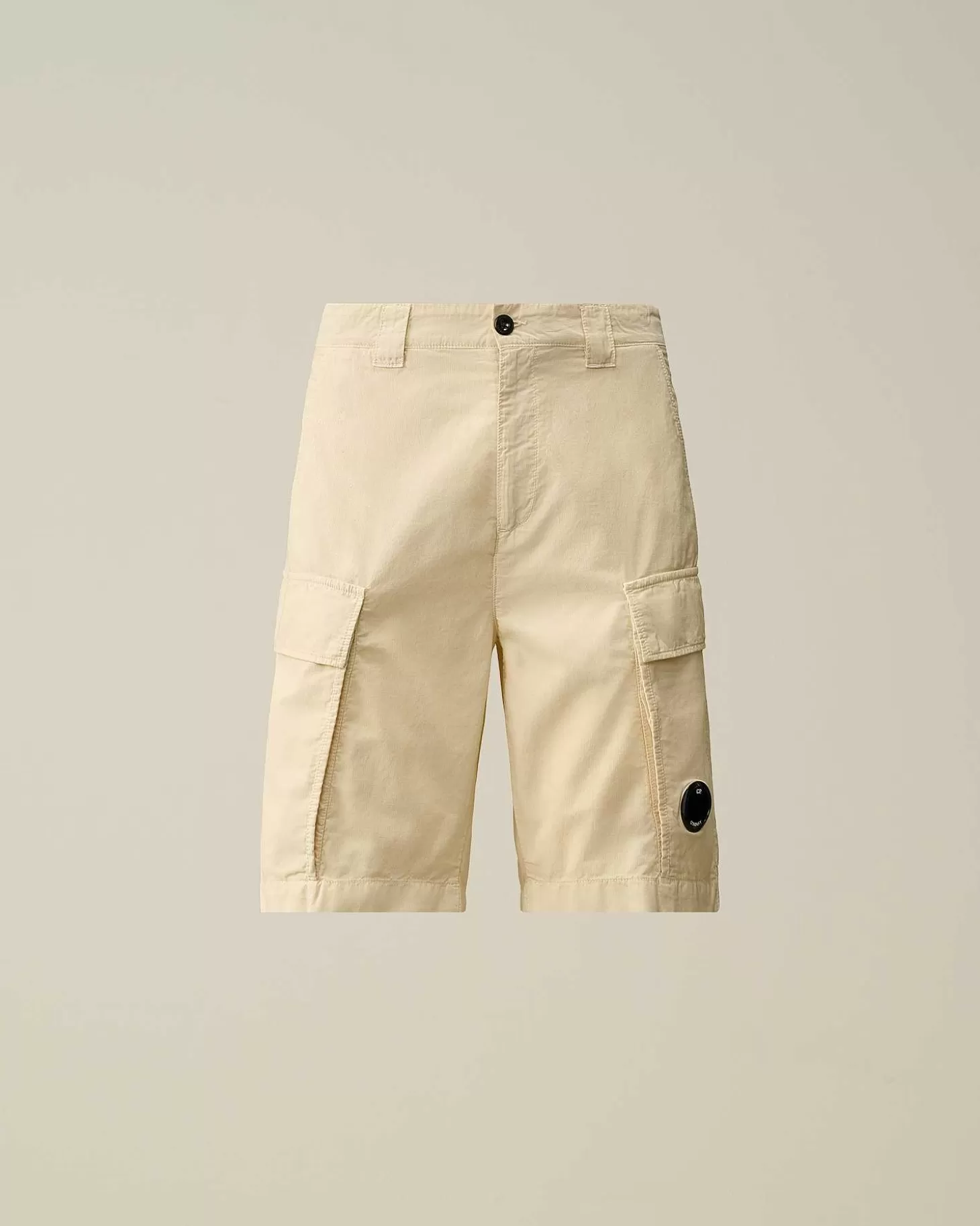 Short Longueur Genoux Avec Braguette Zippée Surmontée D’Un Bouton, Passants De Ceinture Renforcés Et Poches En Biais Pour Les Mains. Une Unique Poche Arrière Avec Logo Brodé Et Deux Poches Cargo Portant Le Détail En Forme De Verre De Lunette C.P. Company Complètent L’Ensemble. Confectionné En Coton Ottoman. Coupe Droite.