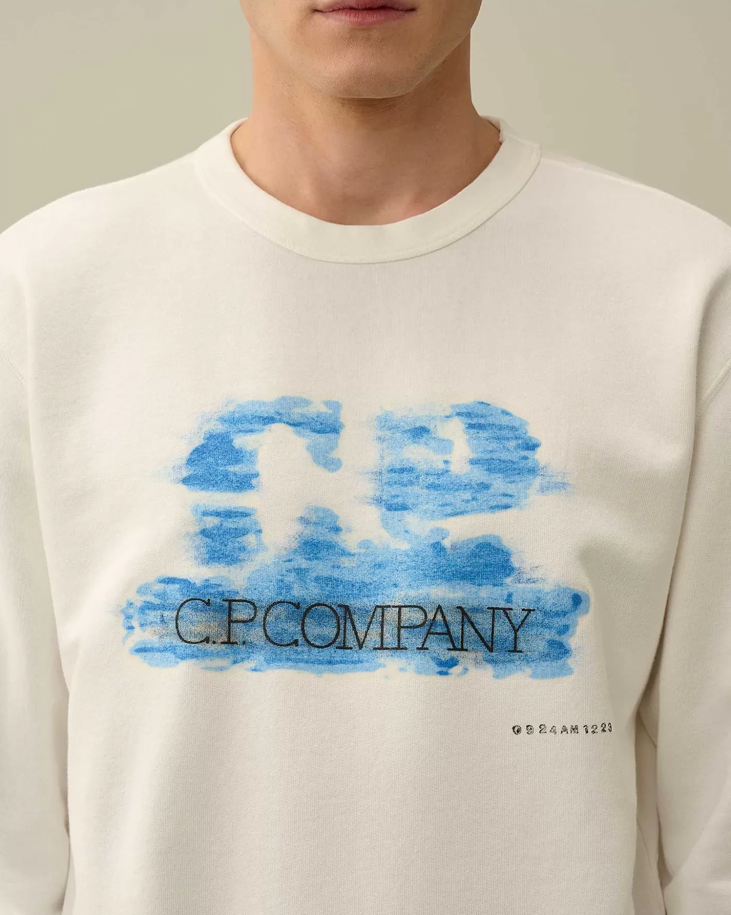 Sweat-Shirt Ras-Du-Cou À Col, Poignets Et Ourlet Côtelés. Un Logo Imprimé À La Main Et Un Tampon Portant L’Heure …