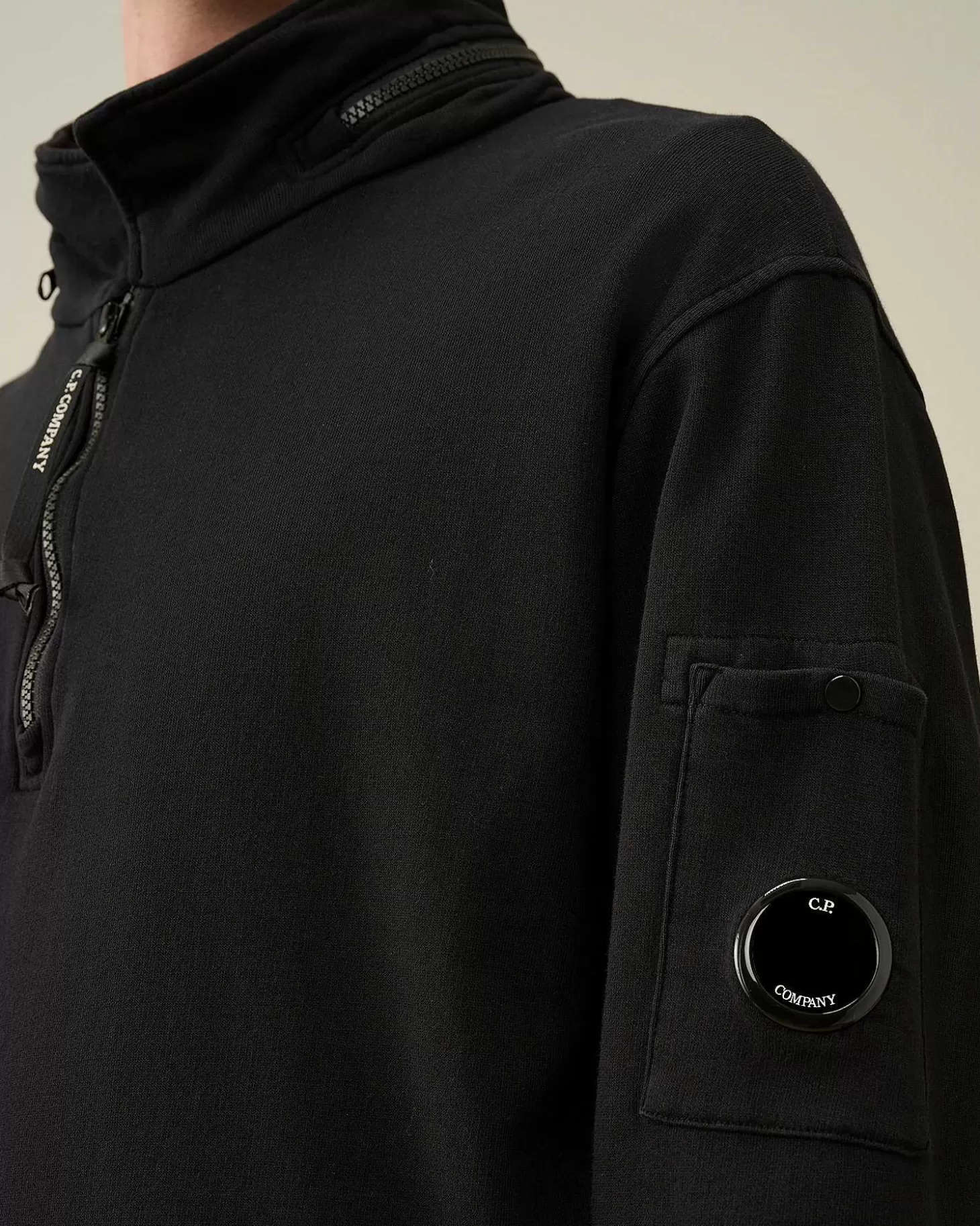 Ce Sweat-Shirt Présente Un Col Montant, Une Fermeture Zippée À Double Curseur Dissimulant Une Capuche Au Dos Et Une Poche Poitrine Zippée. Le Détail En Forme De Verre De Lunette C.P. Company, Ainsi Qu’Un Ourlet Et Des Poignets Côtelés Complètent L’Ensemble. Confectionné Dans Un Molleton De Coton Mi-Épais, Ce Modèle Est Teint En Pièce Pour Plus De Profondeur Et D’Intensité Dans Les Couleurs. Coupe Droite.