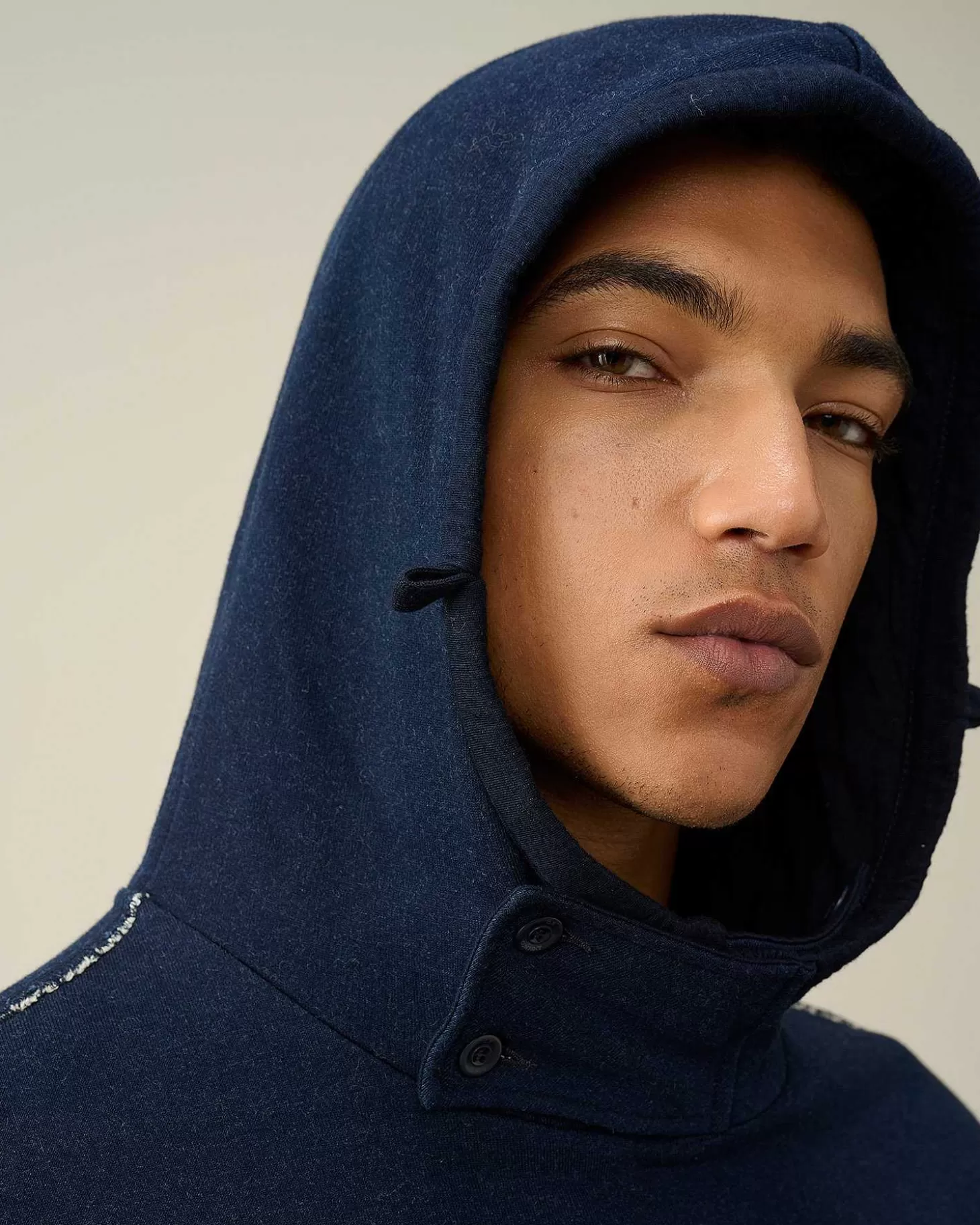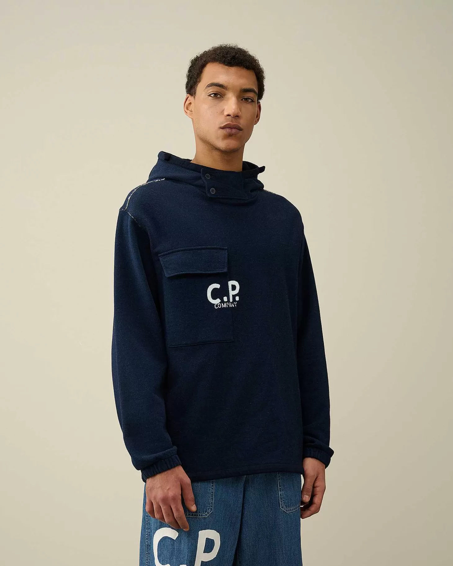Ce Sweat-Shirt Présente Une Capuche Boutonnée Réglable, Une Poche Poitrine À Rabat Et Un Ourlet Réglable. Un Logo Est Imprimé Sur Le Devant. Modèle Confectionné Dans Un Coton Polaire Indigo Idéal Pour L’Hiver En Raison De Sa Douceur, De Sa Densité, De Sa Respirabilité Et De La Chaleur Qu’Il Procure. Coupe Droite.