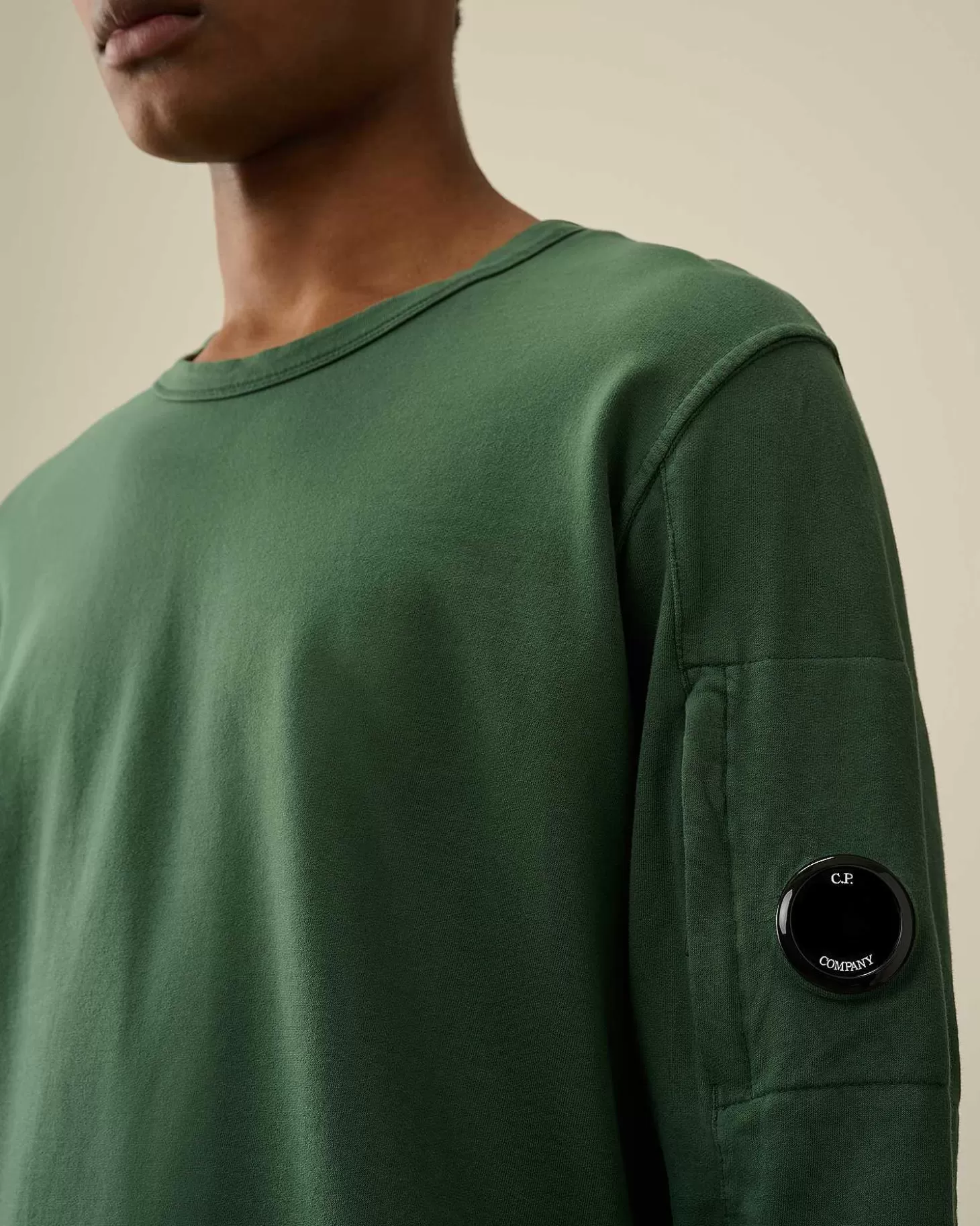 Sweat-Shirt À Col Ras Du Cou Avec Poche Sur La Manche Portant Le Détail En Forme De Verre De Lunette C.P. Company. Des Poignets Et Un Ourlet Côtelés Complètent L’Ensemble. Modèle Confectionné Dans Une Polaire De Coton Légère Synonyme De Souplesse, Et Teint En Pièce Pour Plus De Profondeur Et D’Intensité Dans Les Couleurs. Coupe Droite.