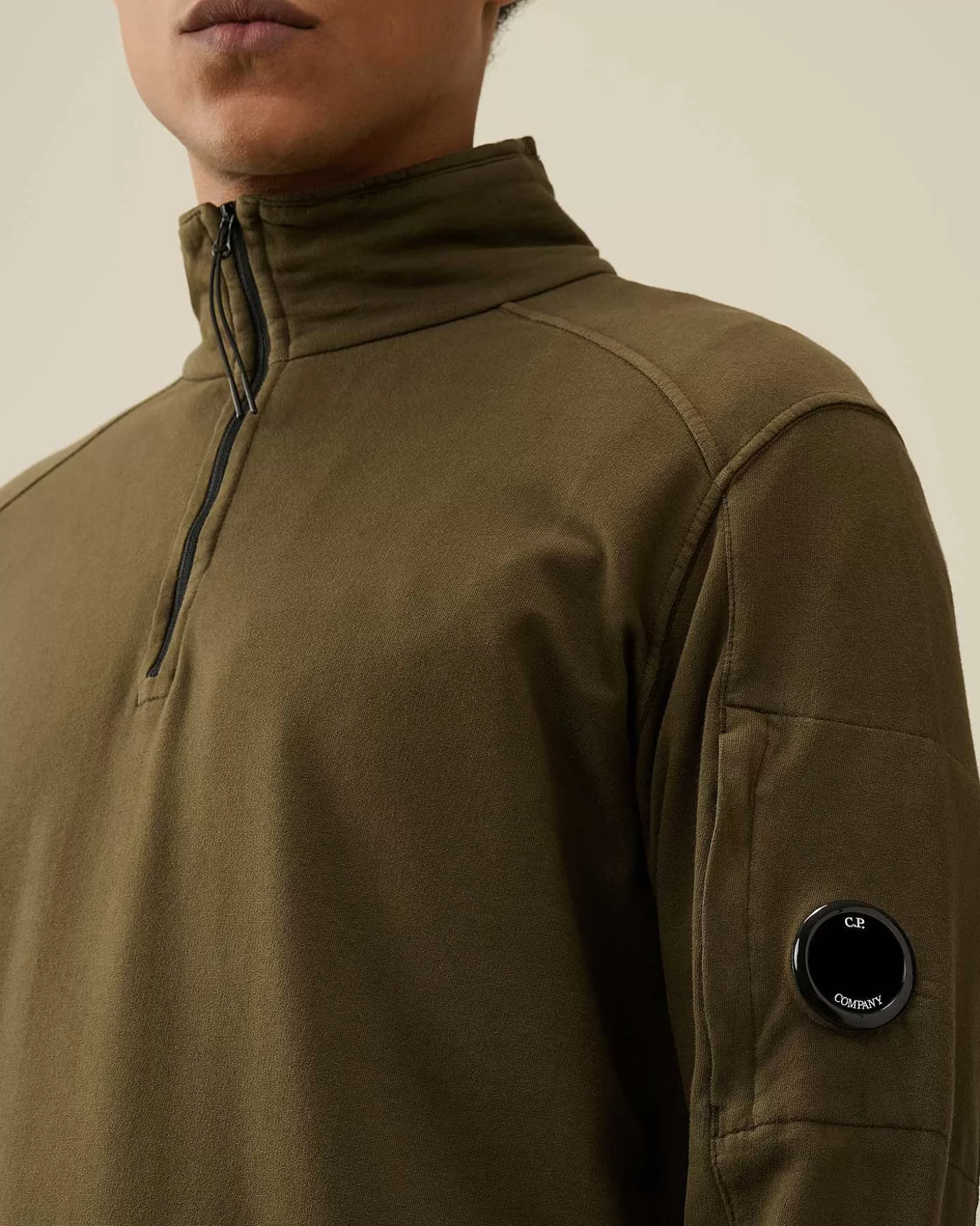 Ce Sweat-Shirt Présente Un Col Montant Zippé, Le Détail En Forme De Verre De Lunette C.P. Company, Ainsi Que Des Poig…