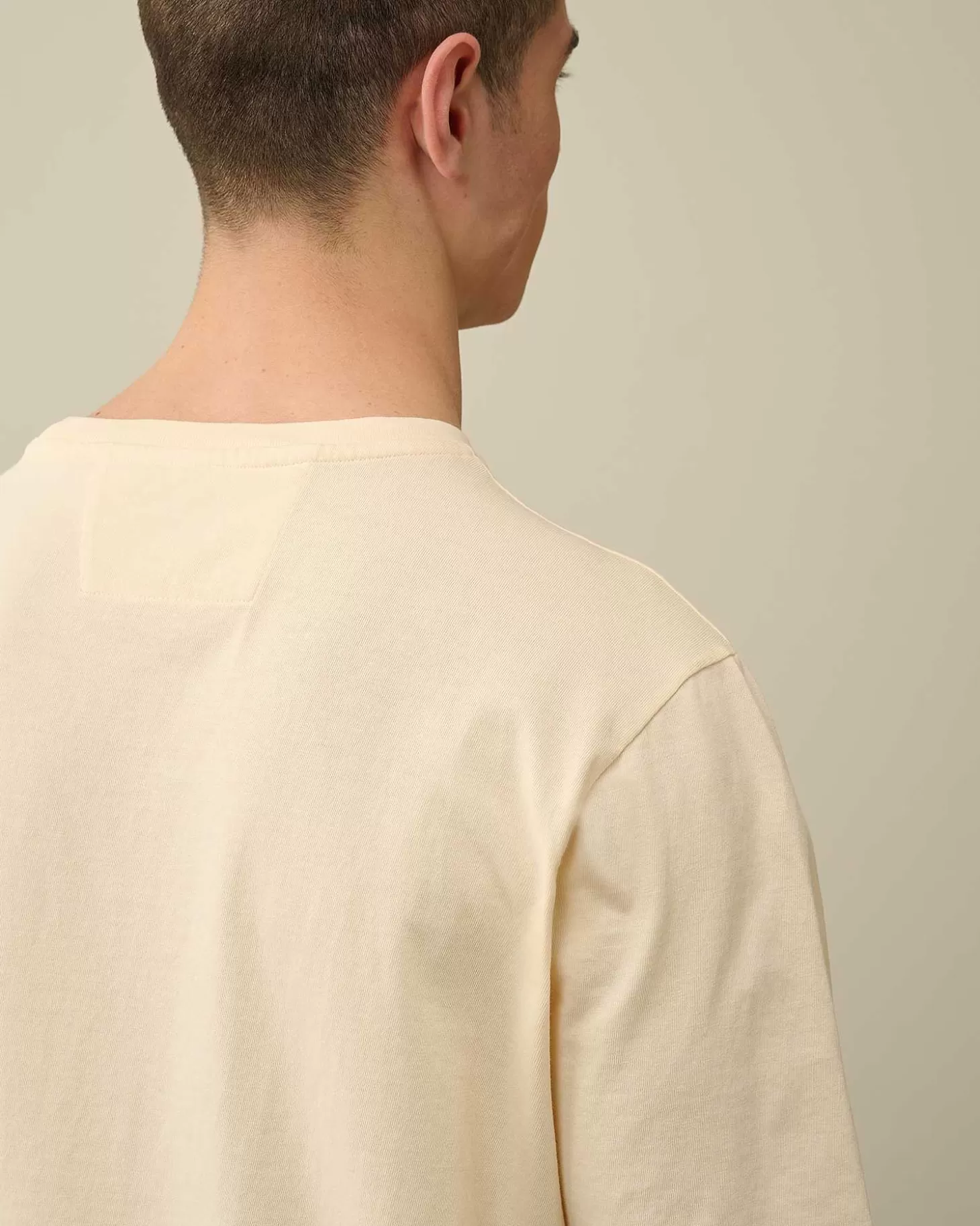 T-Shirt À Manches Courtes Avec Col Ras-Du-Cou Côtelé, Poche Poitrine Verticale Et Logo Imprimé. Ce Modèle Se Distingue Par Son Design Tubulaire Dessinant Une Poche Poitrine Au Moyen D’Une Seule Couture. Confectionné Dans Un Jersey De Coton 20/1 D’Épaisseur Moyenne Et Teint En Pièce Pour Plus De Profondeur Et D’Intensité Dans Les Couleurs. Coupe Droite.