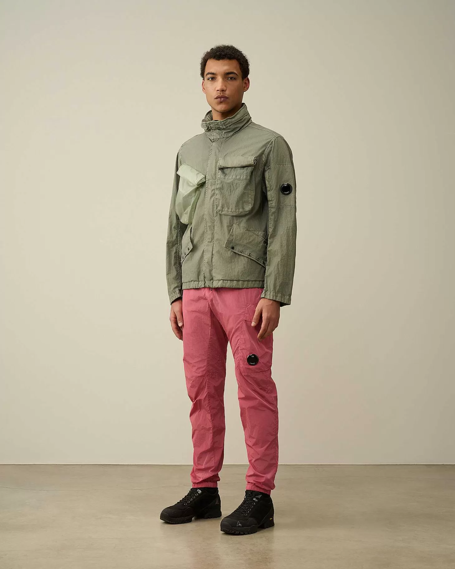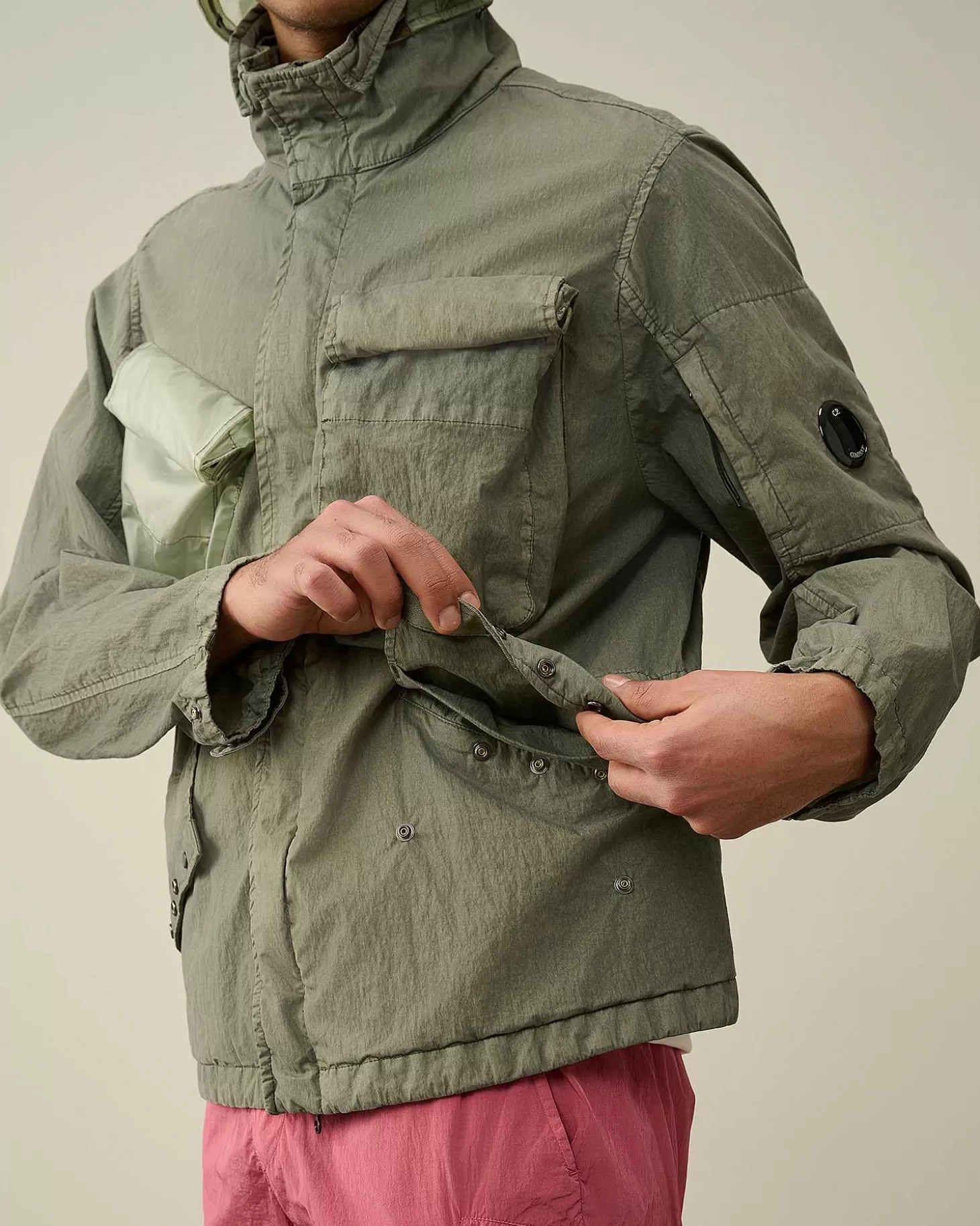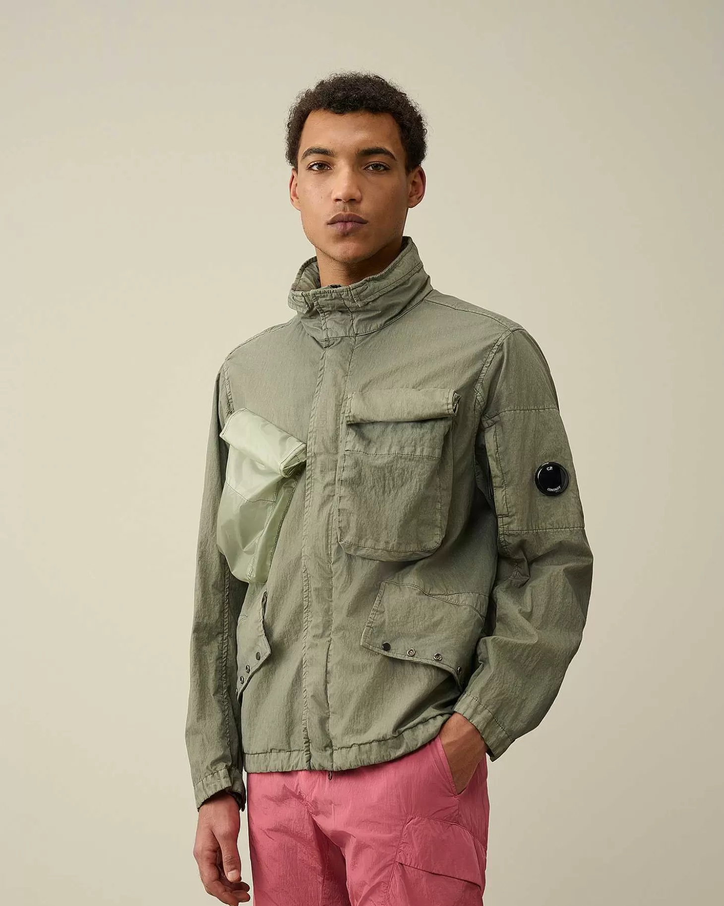 Cette Veste Présente Un Col Montant, Une Capuche Compactable Et Une Fermeture Zippée Dissimulée Tout Du Long. Une Poche Sur La Manche Gauche Portant Le Détail En Forme De Verre De Lunette C.P. Company, Deux Poches Poitrine Sécurisées, Deux Poches En Biais Pour Les Mains, Ainsi Que Des Poignets Et Un Ourlet Réglables Complètent L’Ensemble. Modèle Confectionné En Pium Et 50 Fili, Un Mélange De Nylon Et De Coton Emprunté Aux Parkas Militaires Américaines.Le Revêtement En Polyuréthane Améliore Sa Résistance À L’Eau Et Lui Confère Un Fini Ton Sur Ton Contrasté À L’Issue Du Processus De Double Teinture En Pièce. Coupe Droite.