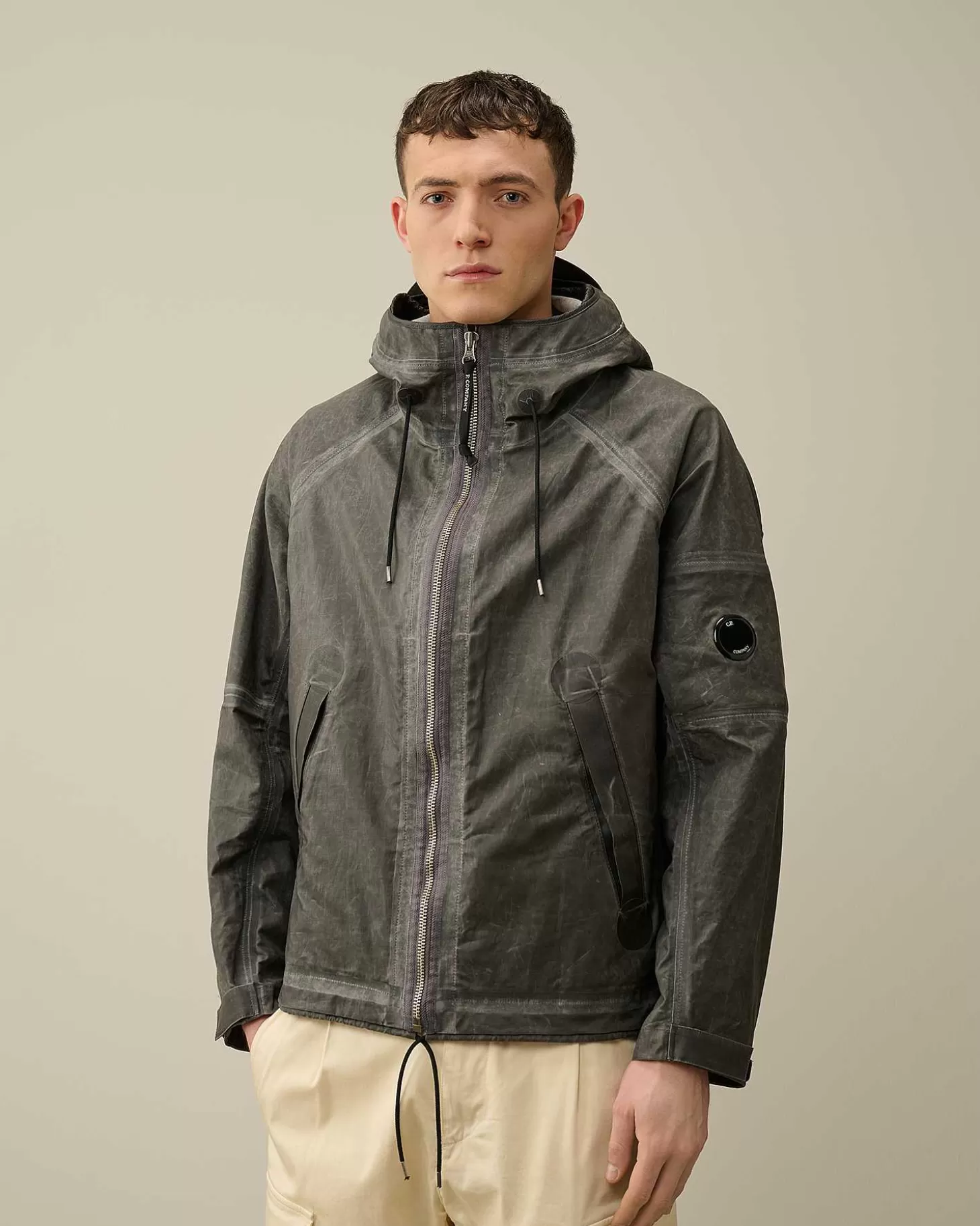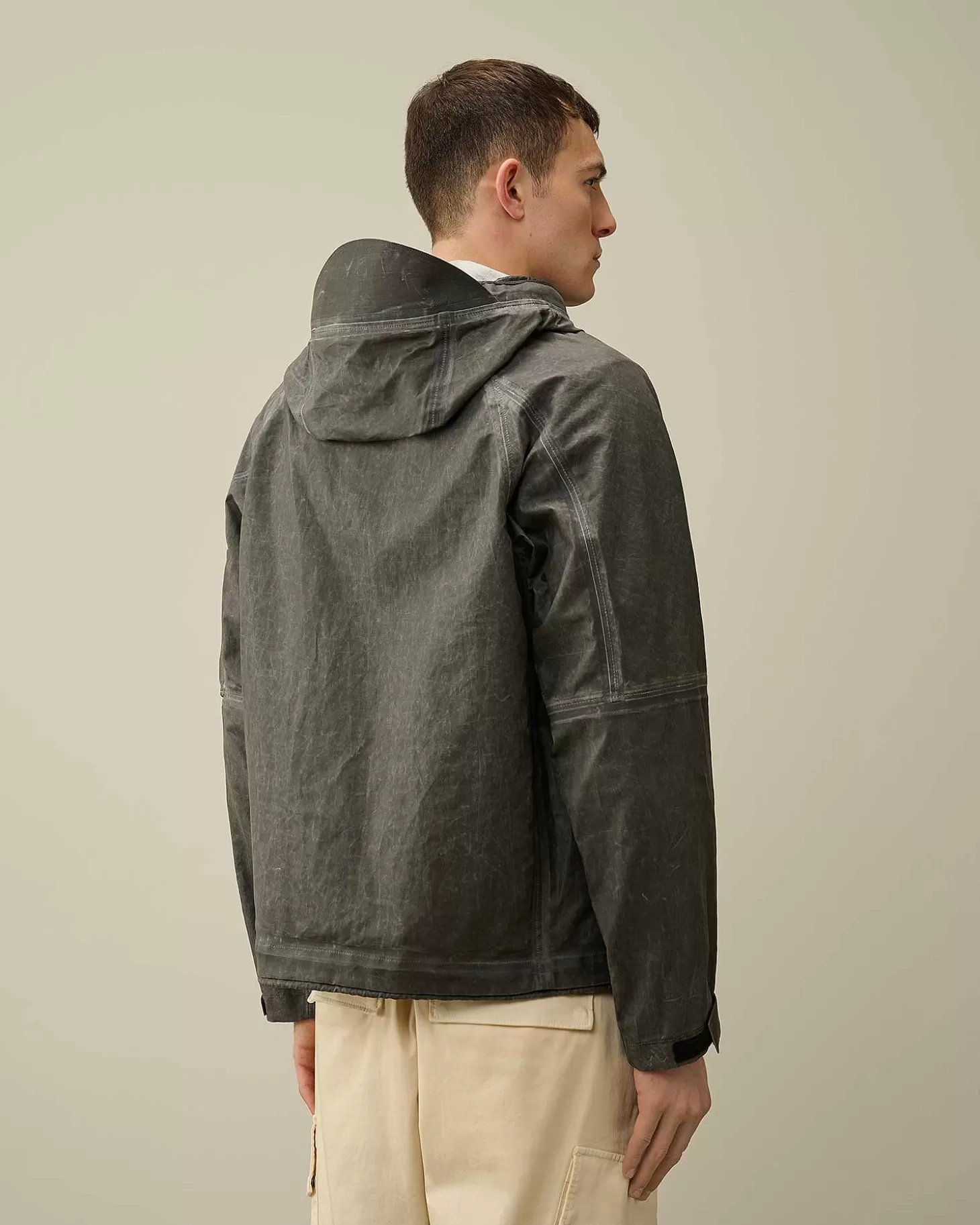 Cette Veste Présente Une Capuche Réglable, Une Fermeture Zippée Sur Toute La Longueur Et Deux Poches Zippées Pour Les Mains. Le Détail En Forme De Verre De Lunette Sur La Manche Gauche, Un Rabat D’Aération Dans Le Dos, Ainsi Que Des Poignets Et Un Ourlet Réglables Complètent L’Ensemble. Modèle Confectionné En Toob-Two, La Version Légère Pour La Belle Saison De Notre Tissu Toob Original : Un Lin Plus Respirant Et Plus Souple Sur Lequel Est Appliqué Un Film Polyuréthane Opaque En 2 Couches. Le Mouvement Très Léger De Ces Deux Couches Donne Au Vêtement Un Aspect Usé Et Délavé, Tandis Que La Bande Externe Transparente Sur Les Coutures Confère Un Effet Caoutchouc. Coupe Droite.