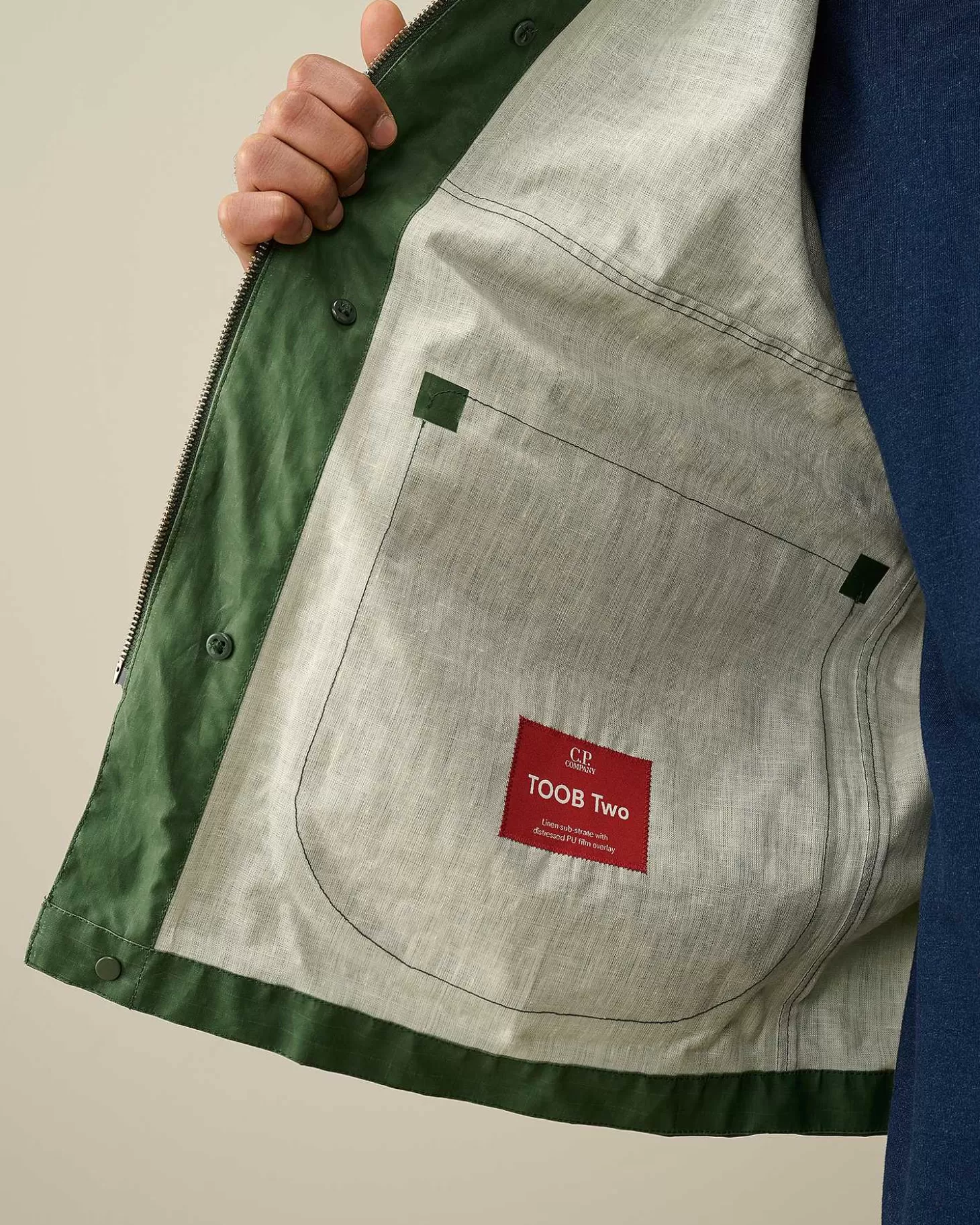 Veste Avec Col Classique, Fermeture Boutonnée Et Zippée Dissimulée, Ainsi Qu’Un Logo Imprimé Sur La Poitrine. Une Poche Sur La Manche, Un Rabat D’Aération Dans Le Dos, Des Poches Avant À Rabat Et Des Poignets Réglables Complètent L’Ensemble. Modèle Confectionné En Toob-Two, La Version Légère Pour La Belle Saison De Notre Tissu Toob Original : Un Lin Plus Respirant Et Plus Souple Sur Lequel Est Appliqué Un Film Polyuréthane Opaque En 2 Couches. Le Mouvement Très Léger De Ces Deux Couches Donne Au Vêtement Un Aspect Usé Et Délavé, Tandis Que La Bande Externe Transparente Sur Les Coutures Confère Un Effet Caoutchouc. Coupe Droite.