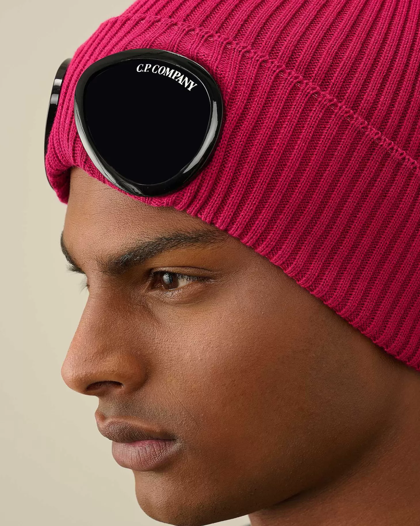 Bonnet Léger Tricoté Dans Une Maille Côtelée Arborant Le Détail Emblématique En Forme De Verre De Lunette C.P. Company Sur Le Revers. Modèle Tricoté Dans Un Coton Haut De Gamme Pour Une Isolation Et Une Durabilité Accrues.