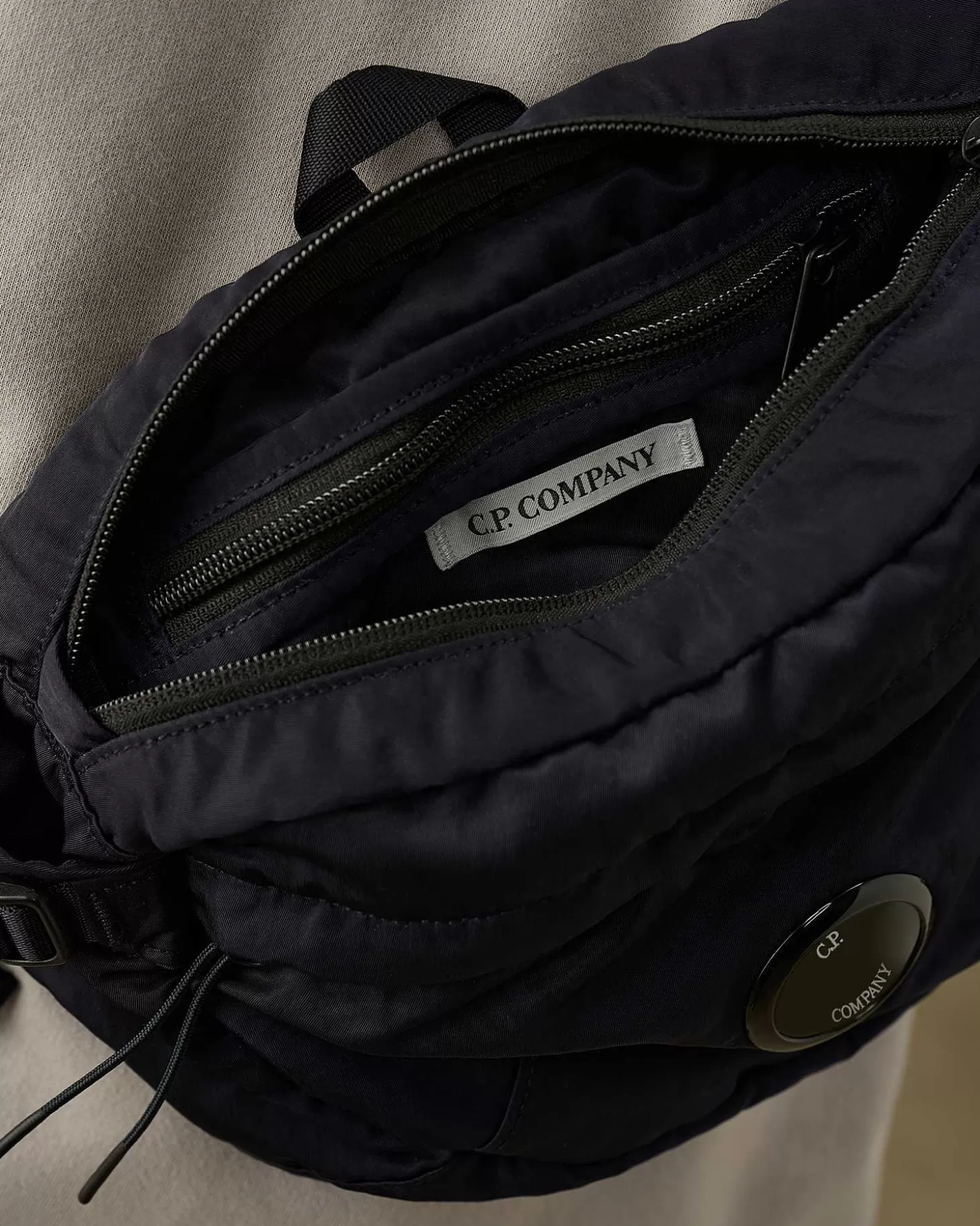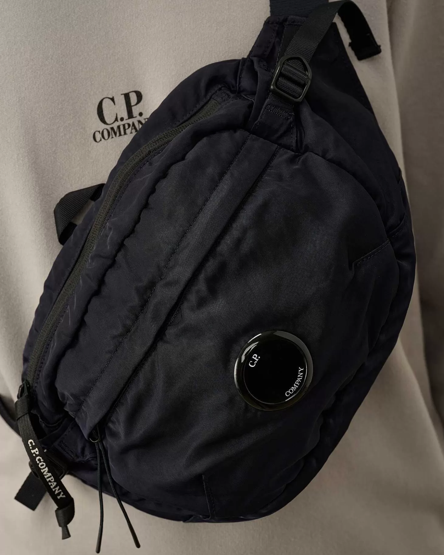 Ce Sac À Bandoulière Compact Présente Une Bride À Fermeture Rapide, Des Boucles De Réglage Et Deux Poches Sécurisées. Le Détail En Forme De Verre De Lunette C.P. Company Rehausse L’Avant. Modèle Confectionné En Nylon B, Un Tissu Robuste Et Résistant À L’Eau Spécifiquement Étudié Pour La Coloration Des Vêtements, Qui Confère Aux Couleurs Profondeur Et Intensité.