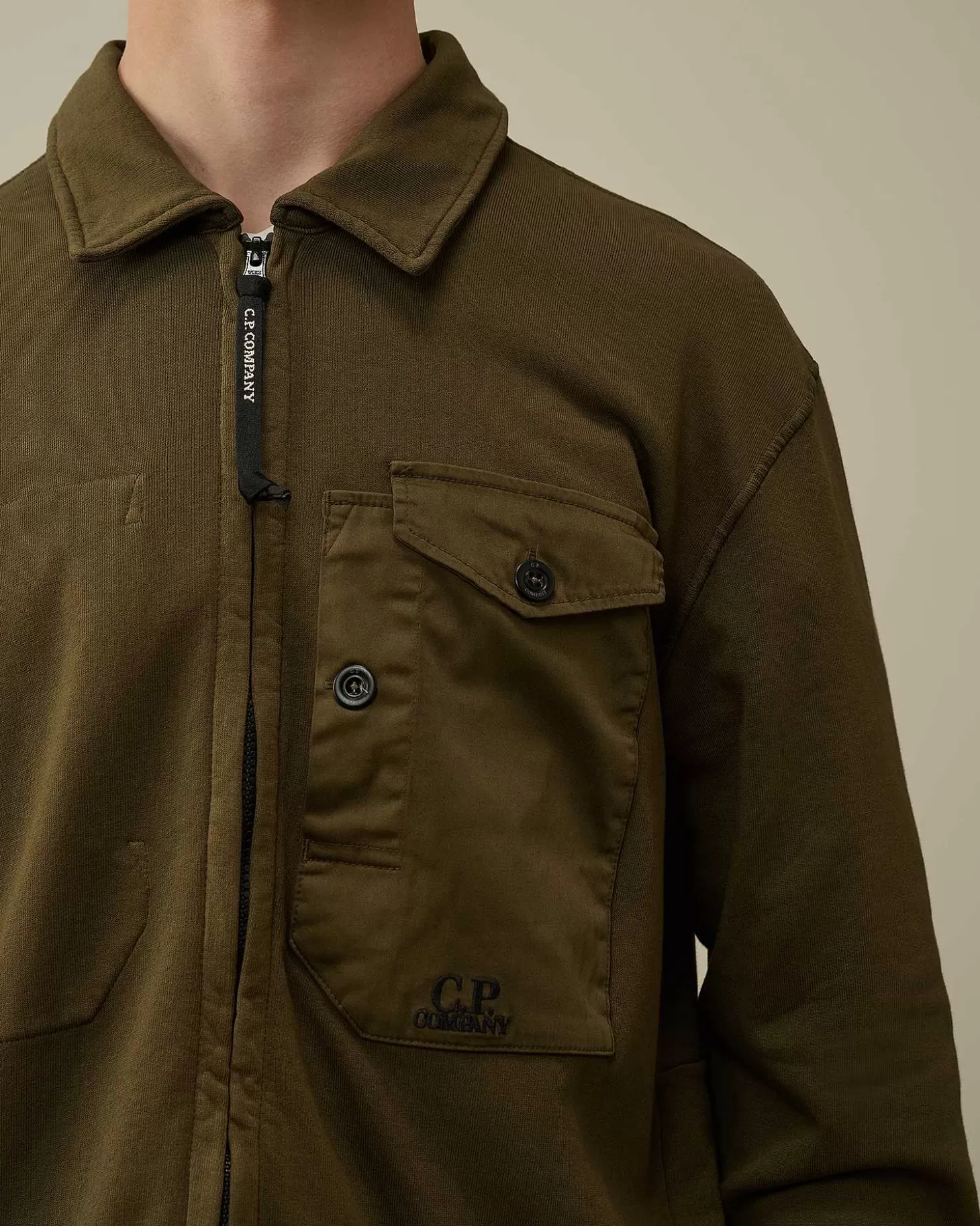 Chemise Manches Longues Avec Col Classique, Fermeture Zippée Sur Toute La Longueur, Deux Poches Poitrine Sécurisées Rehaussées Du Logo Et Poignets Côtelés. Confectionné Dans Un Molleton De Coton Mi-Épais Avec Du Raso Stretch, Ce Modèle Est Teint En Pièce Pour Plus De Profondeur Et D’Intensité Dans Les Couleurs. Coupe Droite.