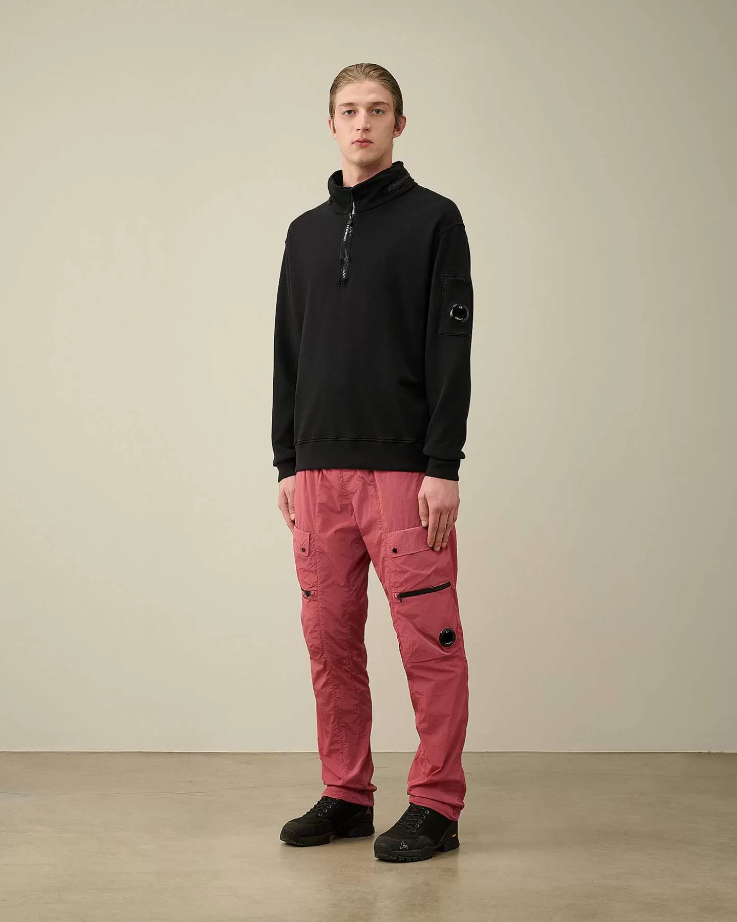 Ce Sweat-Shirt Présente Un Col Montant, Une Fermeture Zippée À Double Curseur Dissimulant Une Capuche Au Dos Et Une Poche Poitrine Zippée. Le Détail En Forme De Verre De Lunette C.P. Company, Ainsi Qu’Un Ourlet Et Des Poignets Côtelés Complètent L’Ensemble. Confectionné Dans Un Molleton De Coton Mi-Épais, Ce Modèle Est Teint En Pièce Pour Plus De Profondeur Et D’Intensité Dans Les Couleurs. Coupe Droite.