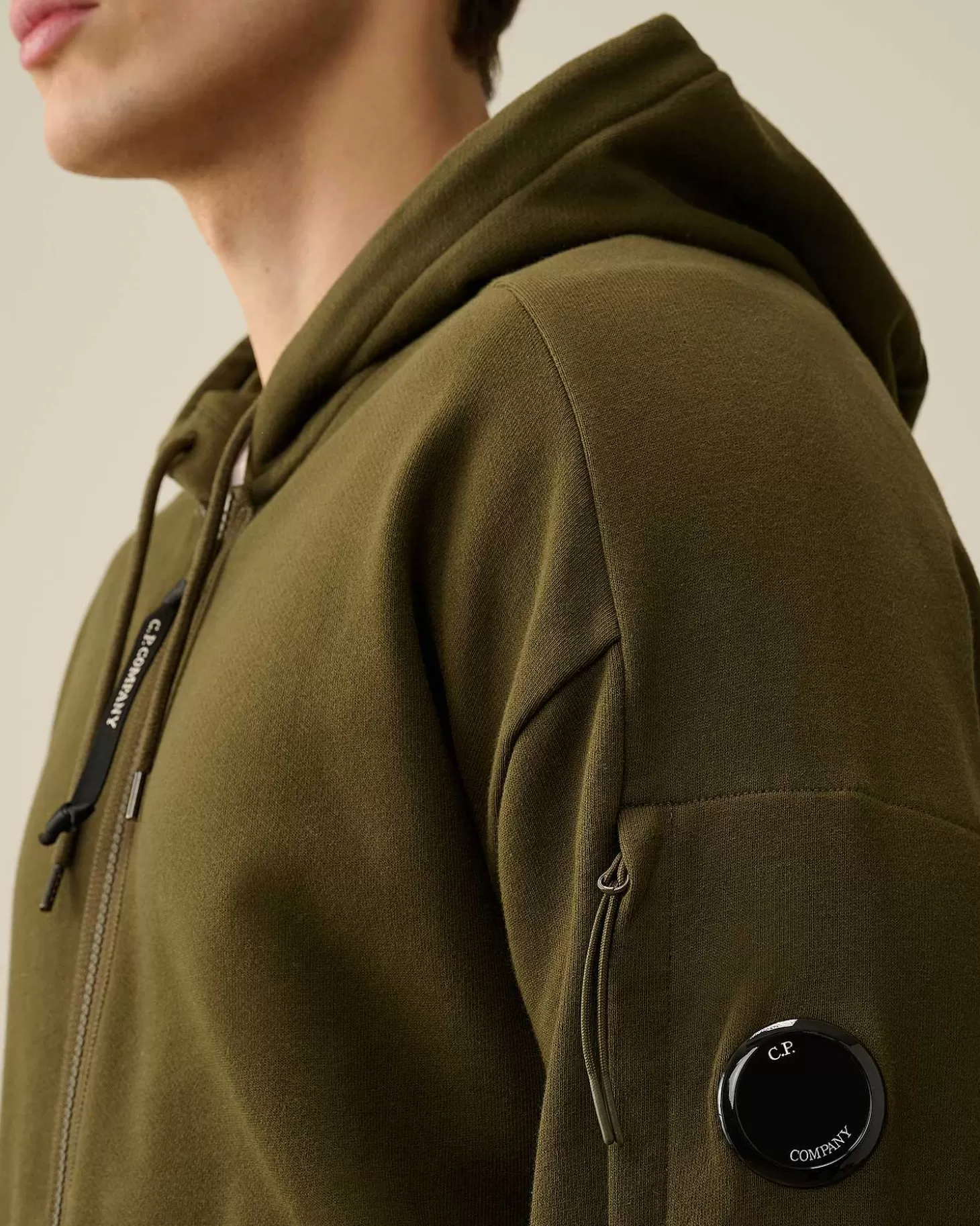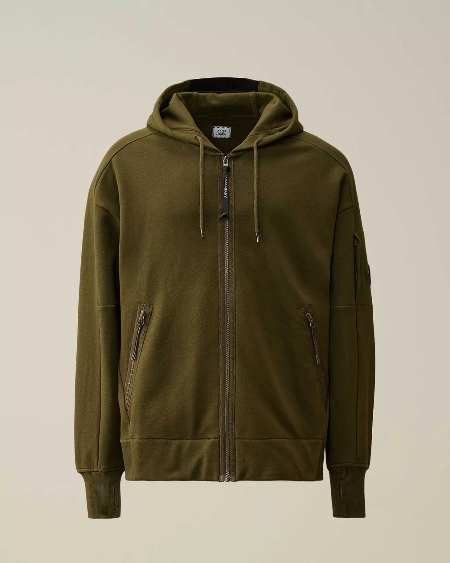 Ce Sweat-Shirt Ras-Du-Cou Présente Une Capuche Réglable, Une Fermeture Zippée Sur Toute La Longueur, Ainsi Que Des Poignets Et Un Ourlet Côtelés. Le Détail En Forme De Verre De Lunette C.P. Company Sur La Poche De La Manche, Un Logo Sur La Capuche, Des Poches En Biais Pour Les Mains Et Des Trous Pour Les Pouces Complètent L’Ensemble. Modèle Confectionné Dans Notre Polaire En Relief Diagonale, Un Coton Bouclé D’Épaisseur Moyenne Offrant Un Confort Absolu Et Une Grande Robustesse. Coupe Droite.