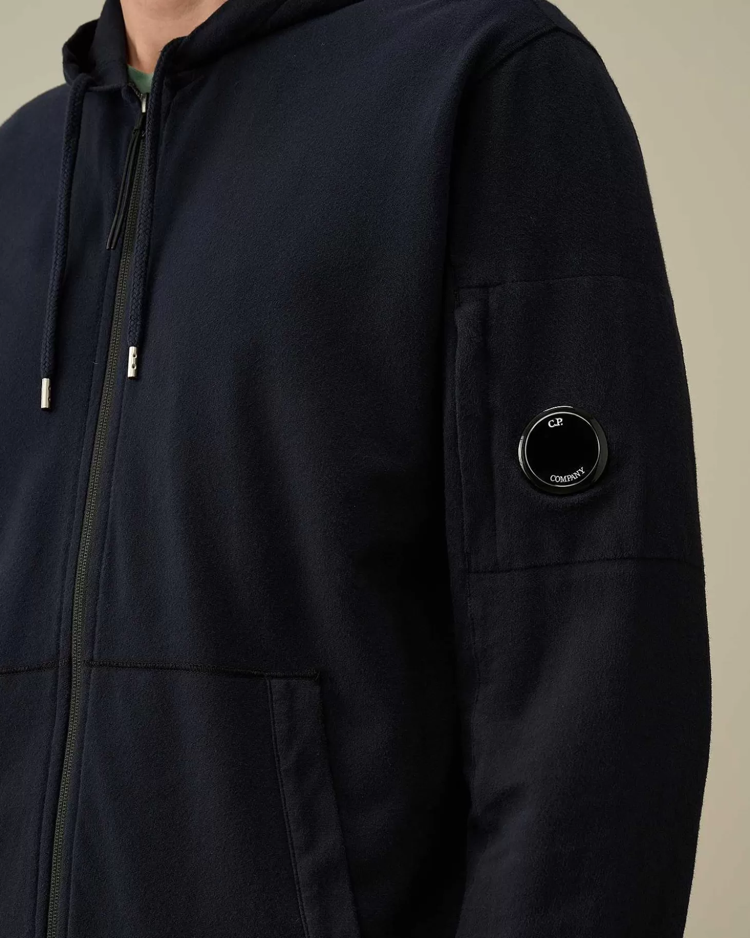 Ce Sweat-Shirt À Capuche Présente Un Col Montant, Une Fermeture Zippée Sur Toute La Longueur, Une Poche Kangourou, Ainsi Qu’Un Ourlet Et Des Poignets Côtelés. Une Capuche Réglable Et Une Poche Sur La Manche Ornée Du Détail En Forme De Verre De Lunette C.P. Company Complètent L’Ensemble. Modèle Confectionné Dans Un Coton Polaire Léger Et Teint En Pièce Pour Plus De Profondeur Et D’Intensité Dans Les Couleurs. Coupe Droite.