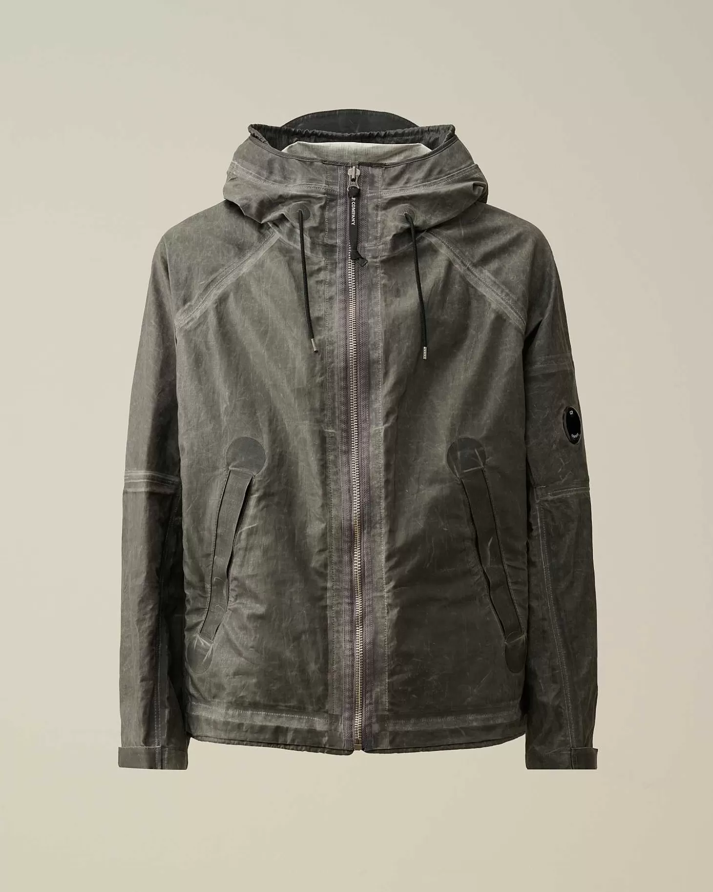 Cette Veste Présente Une Capuche Réglable, Une Fermeture Zippée Sur Toute La Longueur Et Deux Poches Zippées Pour Les Mains. Le Détail En Forme De Verre De Lunette Sur La Manche Gauche, Un Rabat D’Aération Dans Le Dos, Ainsi Que Des Poignets Et Un Ourlet Réglables Complètent L’Ensemble. Modèle Confectionné En Toob-Two, La Version Légère Pour La Belle Saison De Notre Tissu Toob Original : Un Lin Plus Respirant Et Plus Souple Sur Lequel Est Appliqué Un Film Polyuréthane Opaque En 2 Couches. Le Mouvement Très Léger De Ces Deux Couches Donne Au Vêtement Un Aspect Usé Et Délavé, Tandis Que La Bande Externe Transparente Sur Les Coutures Confère Un Effet Caoutchouc. Coupe Droite.